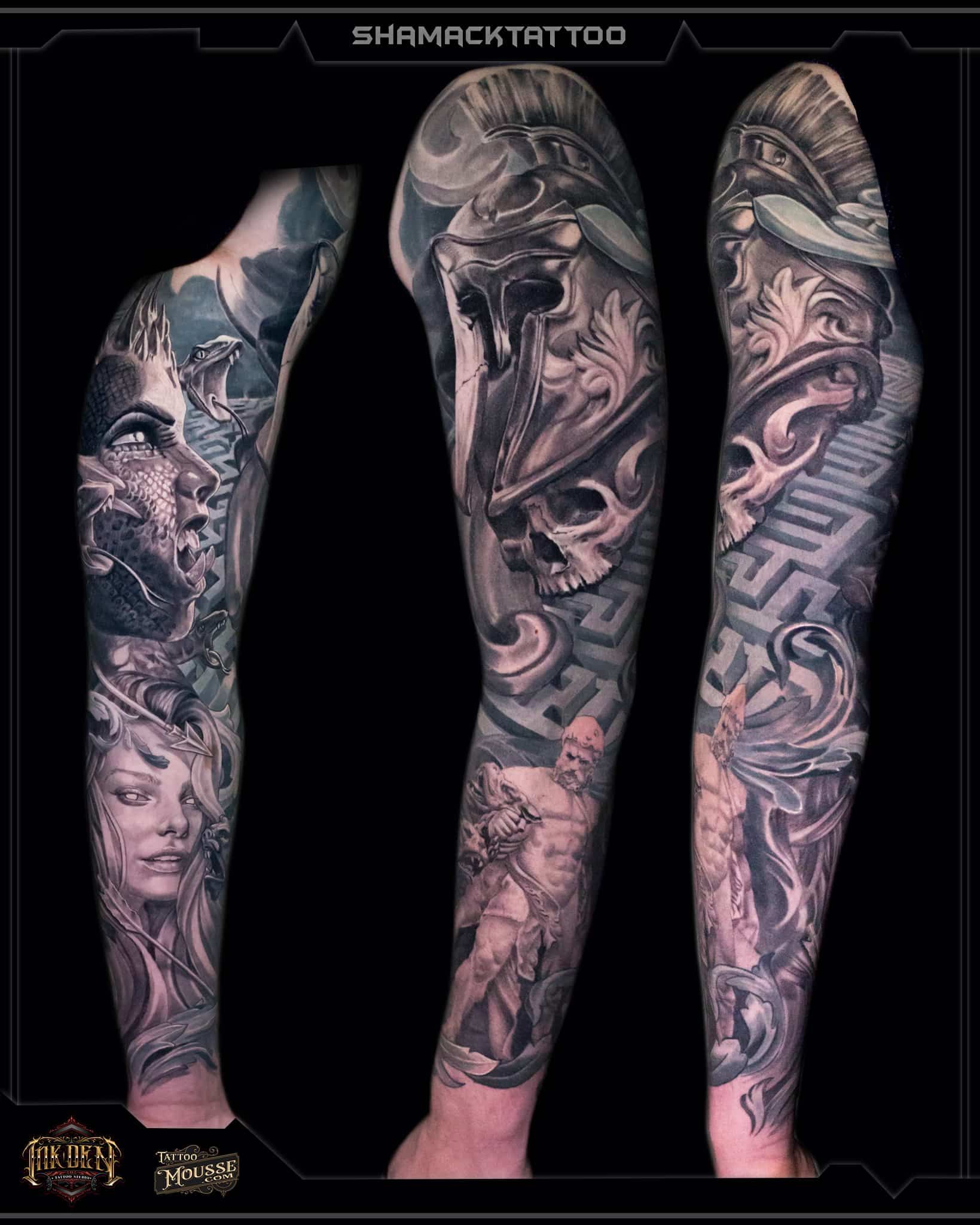 Black and grey or full-colour realism tattoos designed to look lifelike, detailed, and built to last