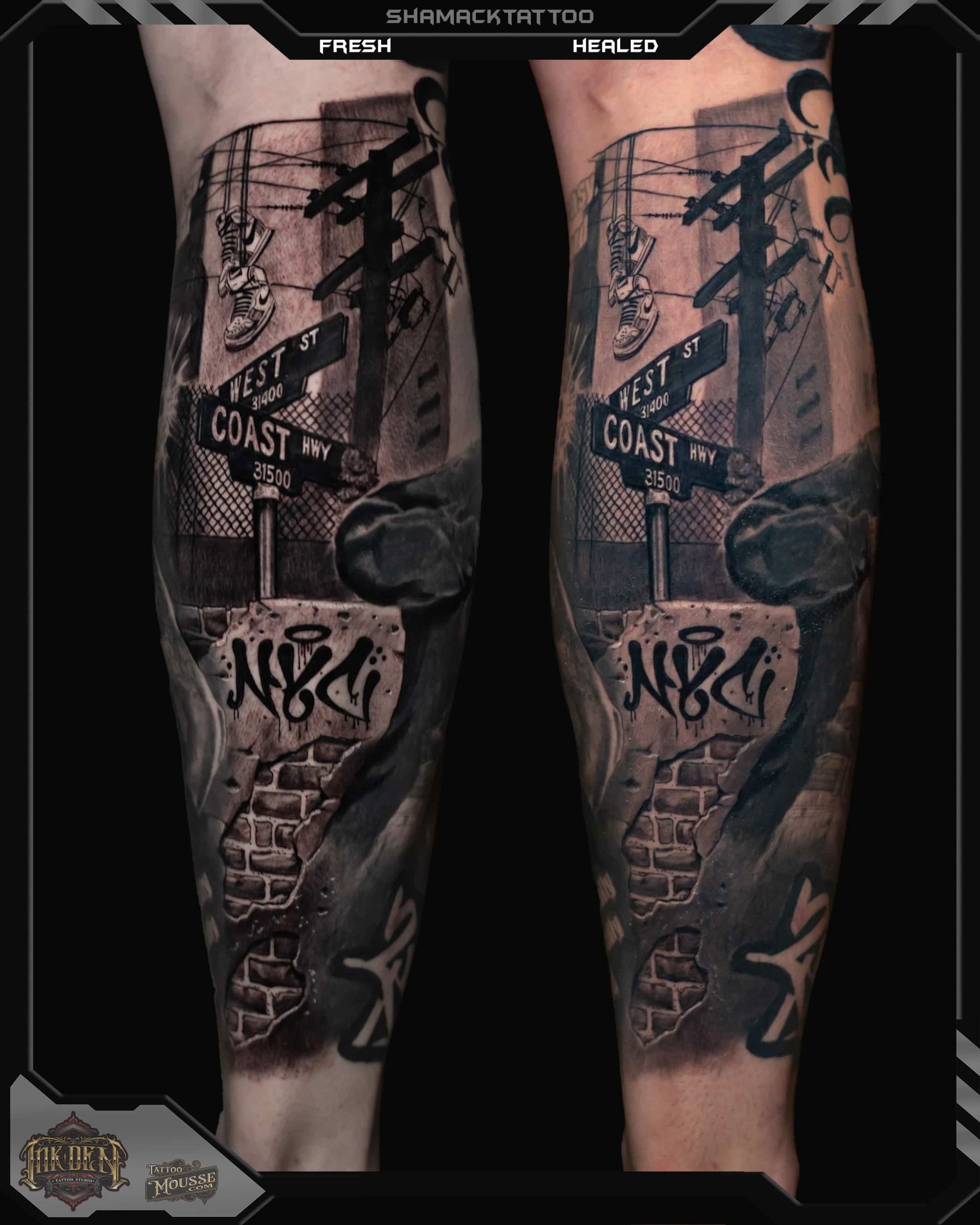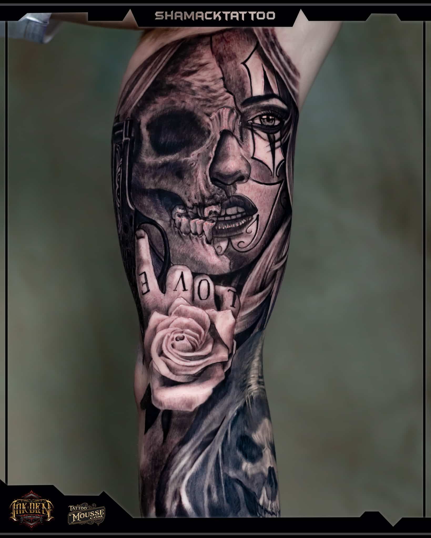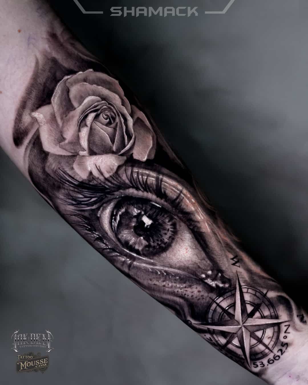 Black and grey or full-colour realism tattoos designed to look lifelike, detailed, and built to last