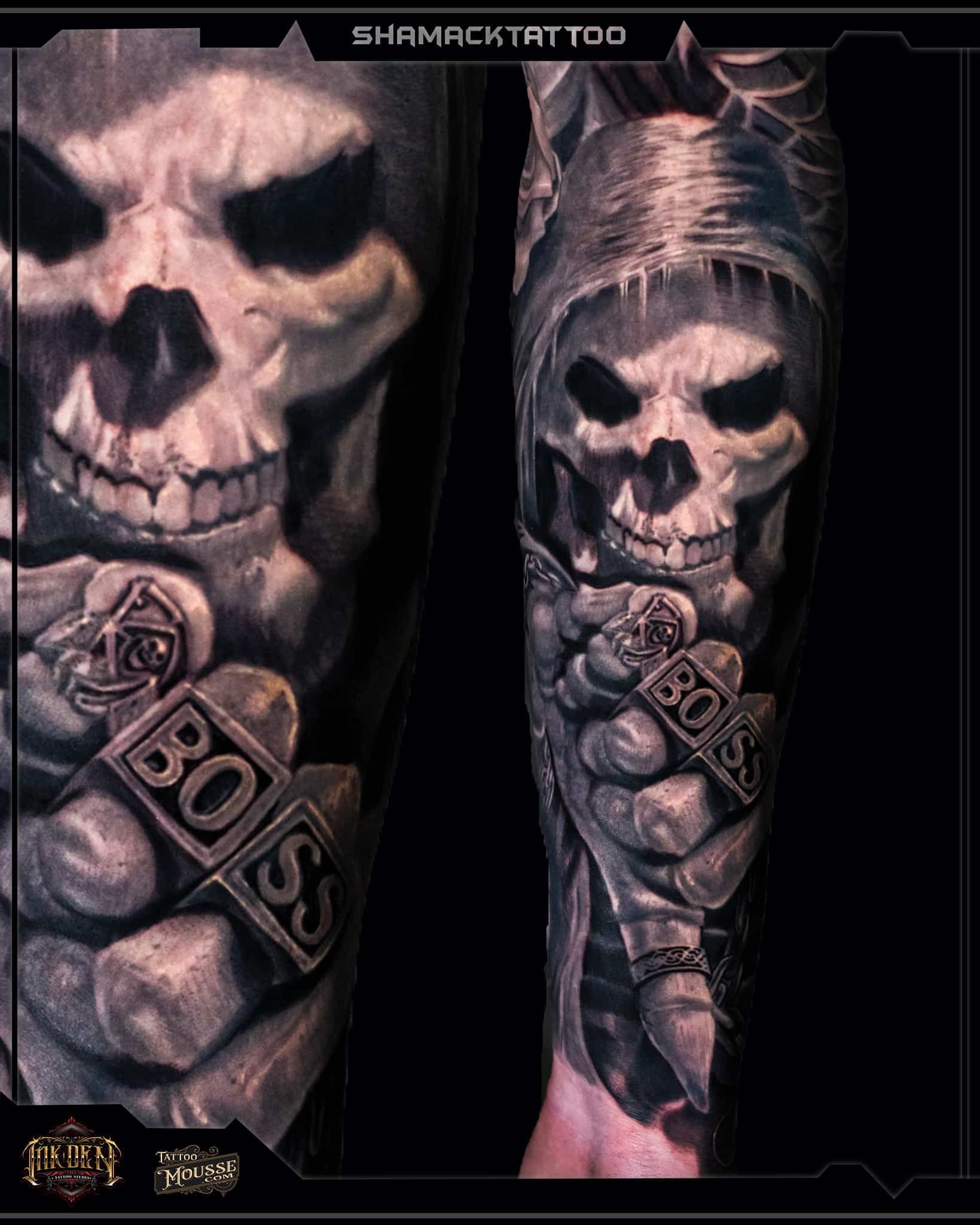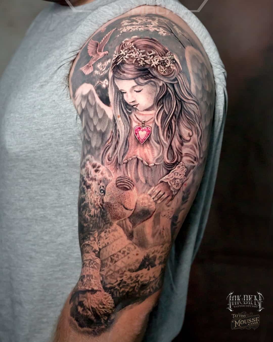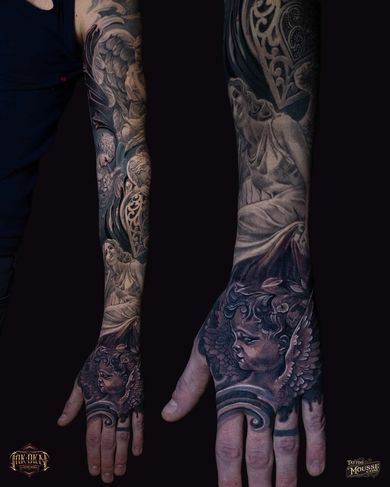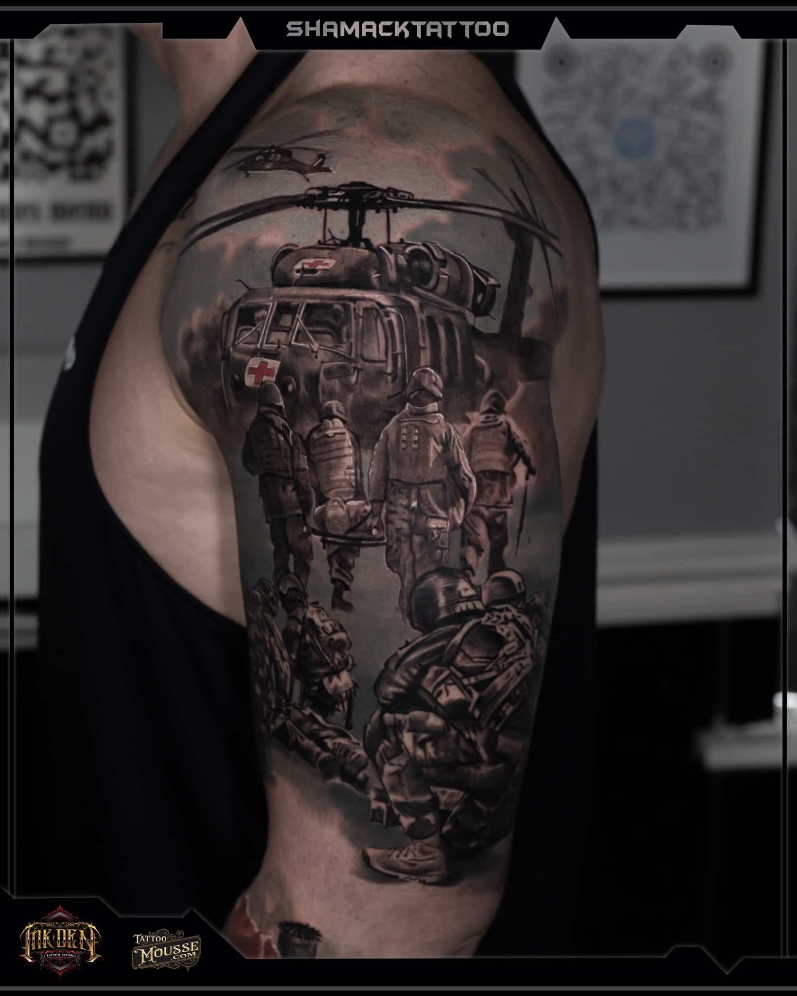 Black and grey or full-colour realism tattoos designed to look lifelike, detailed, and built to last